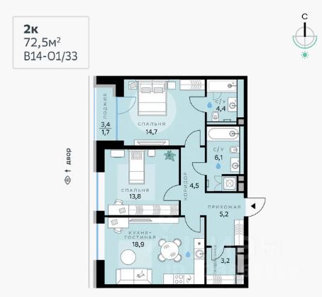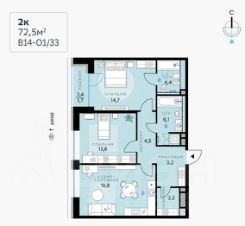 Продаю от собственника 2к. квартиру общей площадью 72,5 кв. м на 6м этаже 10 этажного корпуса 3 квартала В14 класса Optimum в Sbercity с отделкой в стиле Mediterranean, см фото.