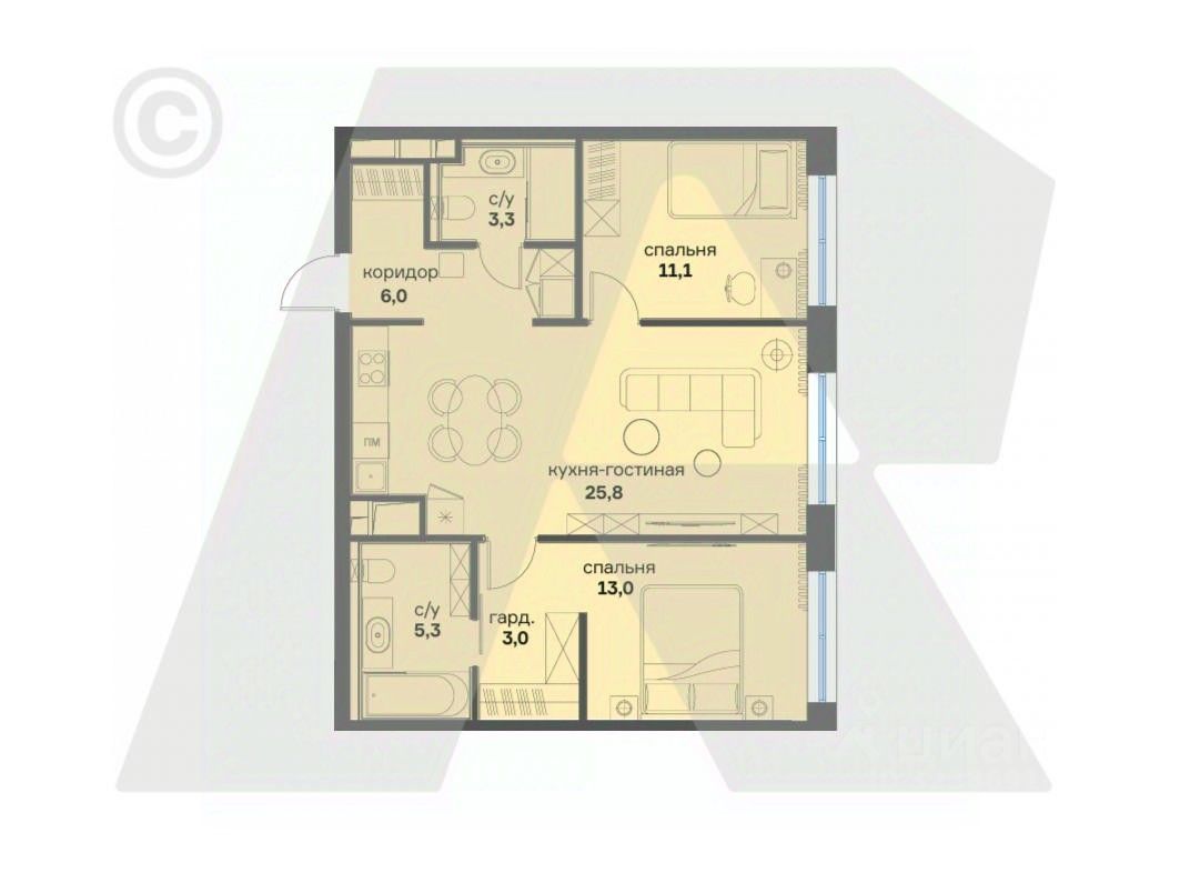 Предлагается квартира с шикарной планировкой с видами в Парк Событие!