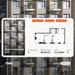 Продаётся 2-комн. квартира площадью 60,5 кв.м на 3 этаже 17 этажного дома (Корпус 2.4, Секция 1) проекта ПИК Лосиноостровский парк. Светлый просторный подъезд на уровне земли, функциональная планировка, большие окна, c отделкой.