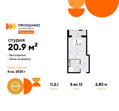 Продается студия 233 в новостройке Жилой квартал "Прокшино" по адресу Москва, ТиНАО, Новомосковский АО, Сосенское С/П, жилой комплекс Прокшино, к11.2.1, район Коммунарка, Новомосковский административный округ, Москва. Общая площадь квартиры - 20.90 кв. м., этаж 5 из 13, секция 4. Тип проекта, по которому построен дом - монолит, компания-застройщик - ООО "А101". Стоимость квартиры - 10255212 Р. Срок сдачи - 4 квартал 2025.