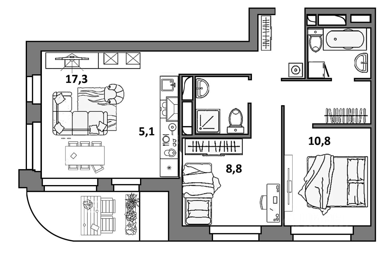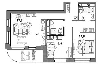 В жилом комплексе Родина Парк предлагается трехкомнатная квартира без отделки. Планировка: кухня-гостиная-столовая с лоджией, мастер спальня с собственной гардеробной и ванной комнатами, вторая спальня, дополнительная ванная комната. Из окон квартиры открывается вид в сторону центра, на заказник Долина реки Сетунь и в благоустроенный внутренний двор. Есть возможность объединения с соседней квартирой.