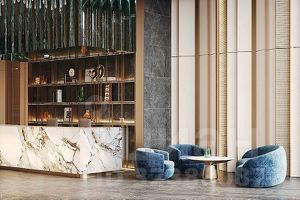 - Просторный парадный холл с дизайнерским освещением и арт-инсталляциями.