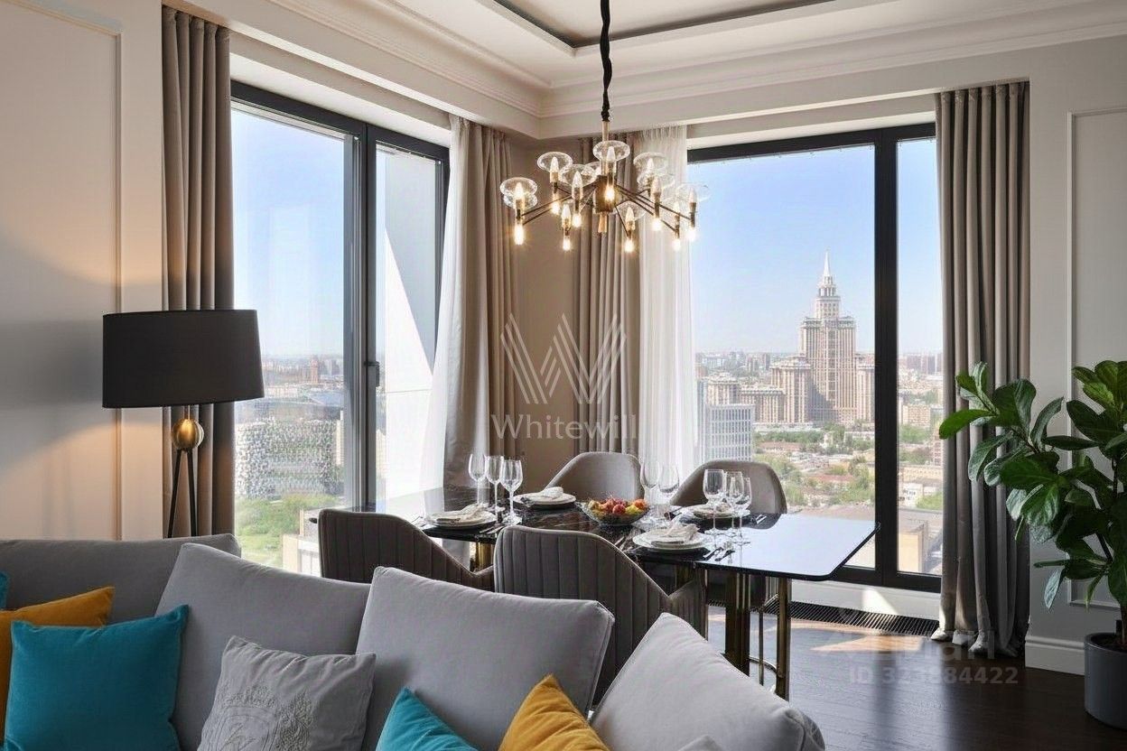 Видовая квартира с 2-мя спальнями в комплексе Prime Park с презентабельной входной группой от британского бюро Dyer. Квартира общей площадью 113 м² расположена на 32-м этаже в корпусе R4. Выполнен дизайнерский ремонт в стиле Classic dark с использованием премиальных материалов, интерьер полностью укомплектован мебелью и техникой.