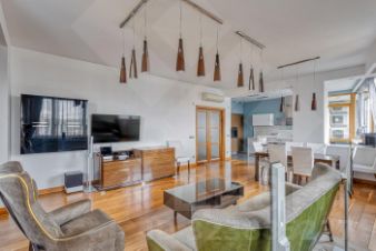 Планировка: гостиная с обеденной зоной, кухня, три спальни, две ванные комнаты, гардеробная и застекленный балкон. Техника Miele, проведен интернет.
