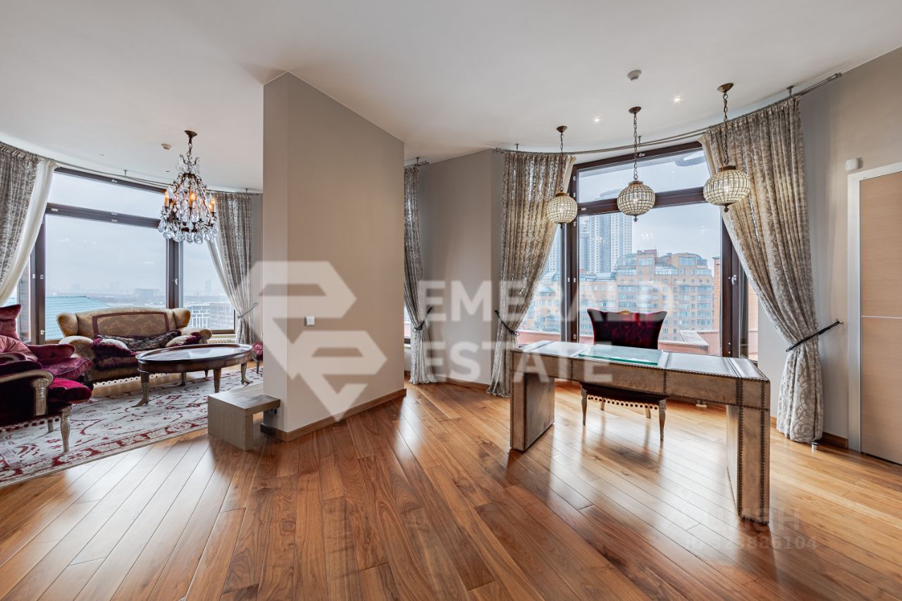 Sky Villa в ЖК Золотые Ключи-2 — единственная в своём роде! Там, где Москва встречает закат над Поклонной горой, рождается чувство безупречного вкуса и свободы. Эксклюзивная многоуровневая Sky Вилла с собственными террасами — единственная квартира с такими параметрами в легендарном комплексе. Пространство, где роскошь становится стилем жизни Интерьер в бежево-кофейных тонах, созданный известным архитектурным бюро, пропитан атмосферой лёгкости и благородства.Панорамное остекление, шелковые ковры, мебель от Provasi, техника Miele и Kuppersbusch, сантехника Duravit, люстры Eichholtz — каждая деталь продумана до совершенства. Террасы, которые вдохновляют Три просторные террасы открывают виды на четыре стороны света. Завтраки и ужин на свежем воздухе с видами на огни Москва-Сити. Зона барбекю — ваш личный оазис над городом. 1 уровень: холл, гостиная 110 м² с выходом на террасы, мастер-спальня, две спальни, гардеробная, 2 санузла. 2 уровень: кухня-столовая 32 м², гостиная 95 м², кабинет. 3 уровень: две спальни, санузел, постирочная. Есть готовый проект по расширению площади и изменению планировок, потенциал роста вместе с вами. Три собственных машиноместа в подземном паркинге. Территория комплекса круглосуточно охраняется, действует пропускная система, видеонаблюдение. На территории — фитнес-центр Sky Club, теннисные корты, детские площадки, пруд и даже мини-зоопарк. Идеальное расположение До центра — 15 минут по Кутузовскому проспекту. Рядом — река Сетунь, престижные школы и детские сады, рестораны и торговые центры. Sky Villa — это не просто пентхаус. Это архитектурная легенда, созданная, чтобы вдохновлять. Прямая продажа, один взрослый собственник, без обременений, быстрый выход на сделку. Звоните — показ возможен в день обращения. Приглашаем рассмотреть уникальный объект. Ощутите, каково это — жить над городом, где небо становится вашим соседом. EMERALD ESTATE является участником ассоциации агентств элитной недвижимости AREA, что гарантирует высокий уровень сервиса и профессионализма.