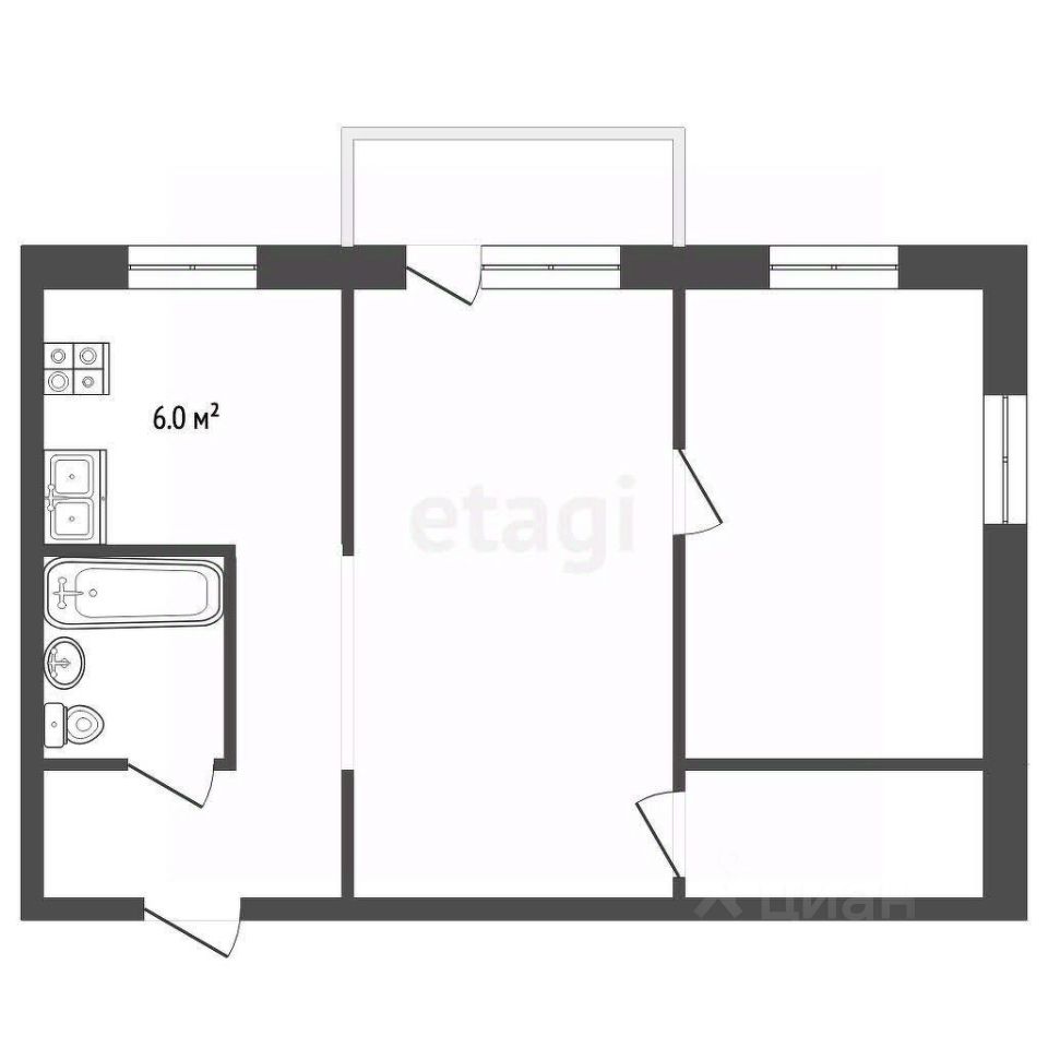 - Кухня: 6 кв.м.