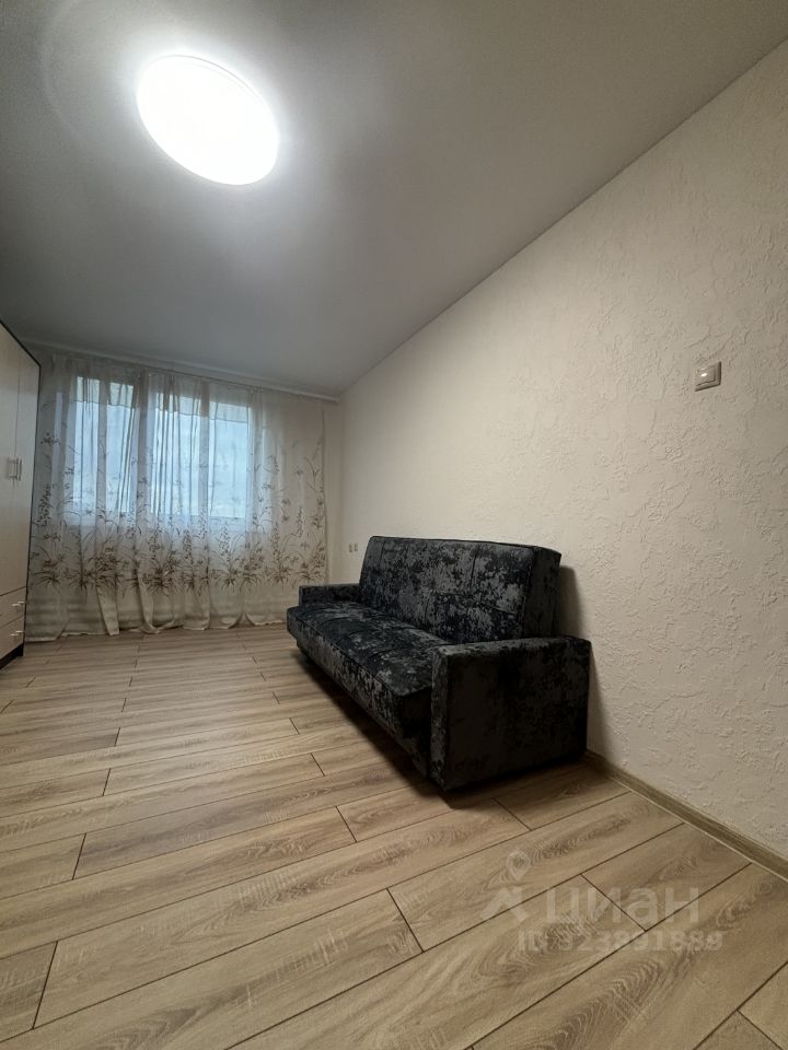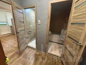 Комната 18,4 метров, кухня 10 метров. В квартире раздельный санузел, ванна комната с поперечной ванной, в которую встает стиральная машинка.