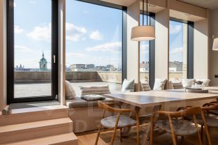 На продажу предлагается видовой апартамент в комплексе премиум-класса Balchug Viewpoint. Общая площадь составляет 175,8 кв. м, из которых 112 кв. м — жилая. Просторная гостиная - столовая идеально подходит для семейных обедов и встреч с друзьями. Есть выход на 200 метровую эксплуатируемую крышу-террасу с видом на Москву - реку и Храм Христа Спасителя.