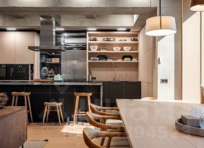 * Функциольнальная гостиная - кухня-столовая, установлена премиальная техника (двухкамерный холодильник, винный холодильник, варочная панель, духовой шкаф, посудомоечная машина).