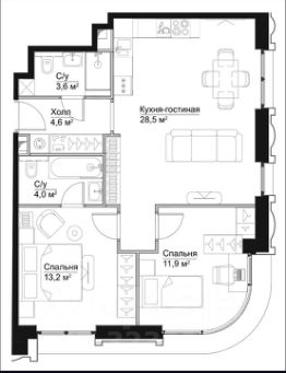 Функциональная планировка: две изолированные спальни, просторная кухня-гостиная, два санузла