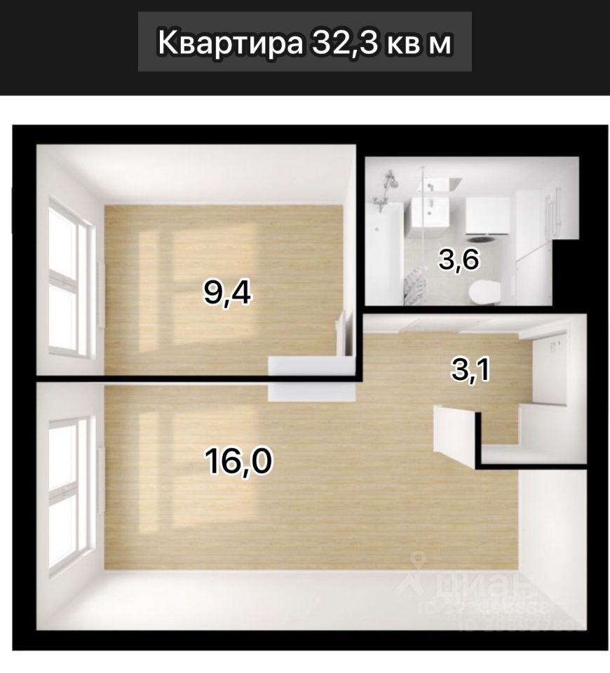 Планировка: большая кухня-гостиная 16 кв м + изолированная спальня, совмещенный санузел, коридор.