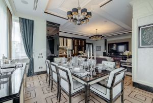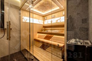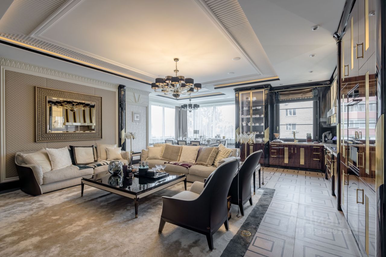 В квартире 5 комнат: 4 спальни со своими гардеробными и ванными комнатами, просторная гостиная, объединенная с кухней-столовой, гостевой санузел, гидромассажная ванна, дизайнерская сауна. В гостиной оборудован домашний кинотеатр премиум-класса: TV 98 дюймов,6 Hi-End колонок, профессиональное караоке и винил.