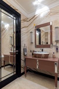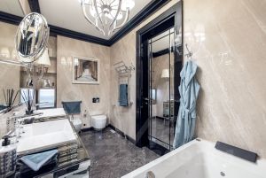 - Сантехника, смесители и мебель в ванных комнатах: THG, Cristal& Bronze, Milldue (Италия, Франция), Сауна и инфракрасная панель Repabad, умные унитазы Geberit.