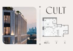 Продается 2-комнатная квартира площадью 88,7 кв.м. на 4-м этаже 9-этажного Клубного дома CULT. Высота потолков 3,2 м.