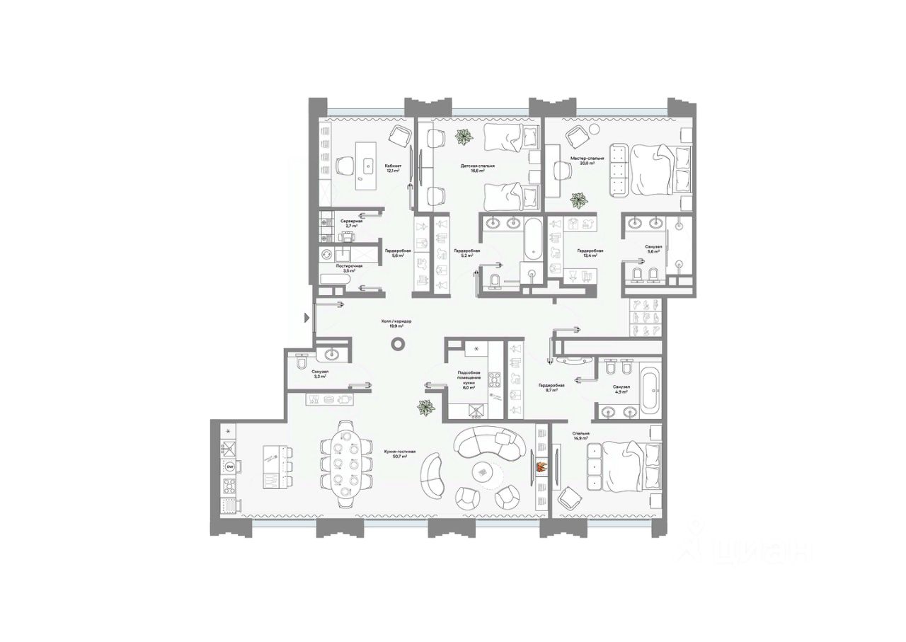 Продается 5-комнатная квартира площадью 207,1 кв.м. на 8-м этаже 9-этажного Клубного дома CULT. Высота потолков 4,5 м.
