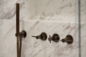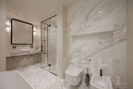 В каждой квартире установлены кухни от итальянского бренда Cesar со встроенной бытовой техникой премиальной линейки Smeg. Кухонный остров, столешница и фартук кухни выполнены из эксклюзивного итальянского мрамора Arabescato Grigio Orobico, одним из лучших видов мрамора на итальянском рынке натуральных отделочных камней.