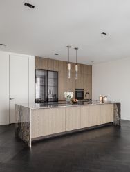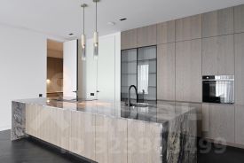 В каждой квартире установлены кухни от итальянского бренда Cesar со встроенной бытовой техникой премиальной линейки Smeg. Кухонный остров, столешница и фартук кухни выполнены из эксклюзивного итальянского мрамора Arabescato Grigio Orobico, одним из лучших видов мрамора на итальянском рынке натуральных отделочных камней.