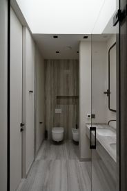 Описание: Главный вход в пентхаус ведет в прихожую-холл (17,03 м2), второй - в зону столовой (40,30 м2) и дополнительной кухни для персонала (5,47 м2). Панорамные окна просторной столовой, кабинета (19,45 м2) и гостиной с дровяным камином (63,33 м2) выходят на юго-запад, на тихий переулок Малый Головин. Панорамные окна двух спален (24,83 м2 и 31,73 м2) выходят на запад. Вдоль столовой, кабинета, гостиной и двух спален протянулась открытая галерея (13,06 м2). На галерее можно организовать зону для отдыха (столик, кресла), где приятно проводить время с чашечкой кофе и любоваться Москвой. Панорамные окна третьей спальни (33,47 м2) с собственной открытой галереей (1,78 м2) выходят на восточную сторону - во внутренний двор-сад с фонтаном и водными каналами. В этой спальне также установлен дровяной камин. При каждой комнате предусмотрены места для хранения, во второй спальне также есть гардеробная (5,66 м2). Помимо ванной комнаты (8,57 м2), в квартире расположено два санузла с душем, гостевой санузел и постирочная. Дом сдан.