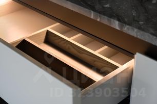 В каждой квартире установлены кухни от итальянского бренда Cesar со встроенной бытовой техникой премиальной линейки Smeg. Кухонный остров, столешница и фартук кухни выполнены из эксклюзивного итальянского мрамора Arabescato Grigio Orobico, одним из лучших видов мрамора на итальянском рынке натуральных отделочных камней.
