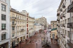 Гостиная смотрит на пешеходную часть Старого Арбата, окна спален выходят в тихий Серебряный переулок.