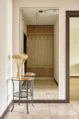 В просторном коридоре есть необходимые зоны для размещения верхней одежды и обуви.