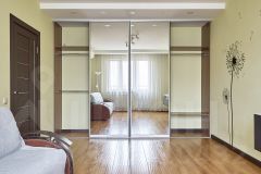 Комната 18,9 кв.м. со встроенным зеркальным шкафом-купе — отличное решение для хранения вещей, выход из комнаты на застеклённый балкон.
