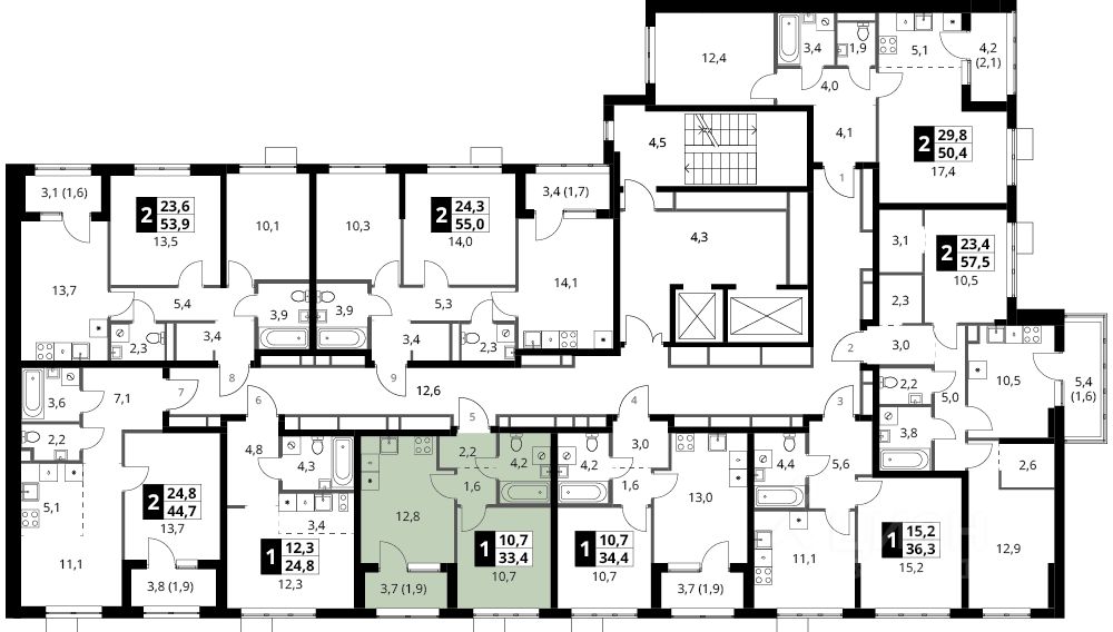 Продаётся 1-к квартира номер 598 общей площадью 33.4 кв.м. на 3-м этаже 18 этажного здания. Без отделки.