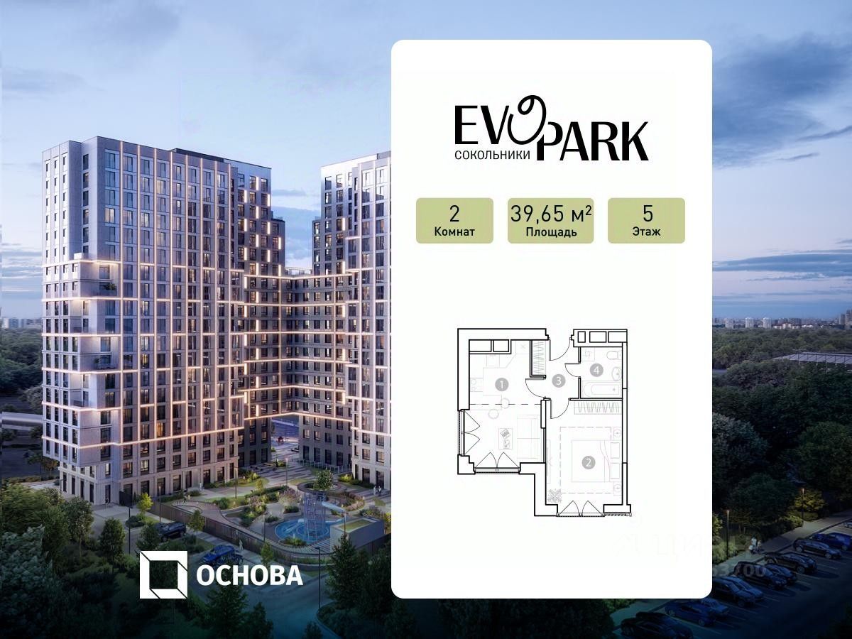 Продаются 2-к апартаменты площадью 39.65 кв.м. на 5-м этаже 20 этажного дома в EVOPARK Сокольники от ГК ОСНОВА.
