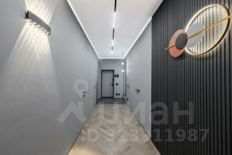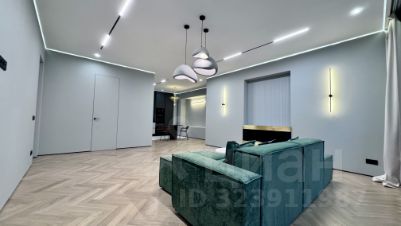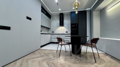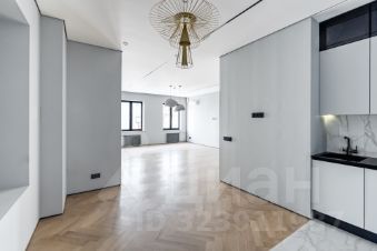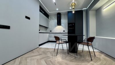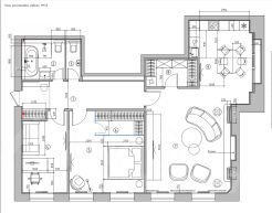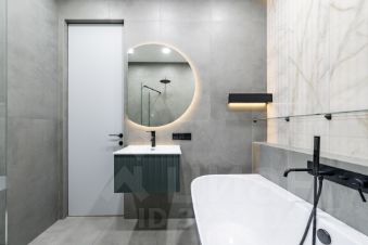 Ультрамодный современный дизайн. Интерьер - спокойные цвета и чистые линии. Скрытые межкомнатные двери декорированы в цвет стен. Преобладает серый цвет, который не просто очень моден, он хорошо подходит как классической, так и современной мебели. Разнообразие в интерьер вносят текстуры, создающие яркие акценты. Теневой плинтус приносит эффект парящих стен. Паркет из натурального дерева.