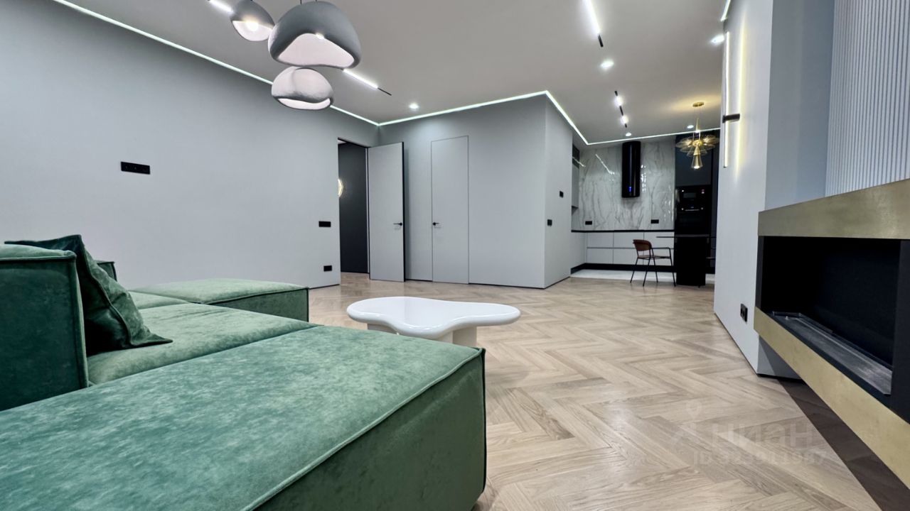 Огромная гостиная объединена с кухней. Биокамин с живым пламенем. Установлены системы кондиционирования.