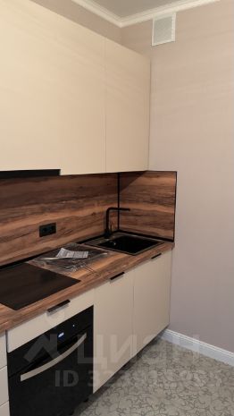 Установлен кухонный гарнитур, варочная панель Maunfeld, духовой шкаф Maunfeld, вытяжка телескоп Maunfeld.