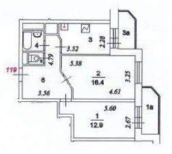 В квартире две изолированных комнаты 12,9 м2 и 16,4 м2 (плюс балкон). Кухня 9м2 (плюс балкон).