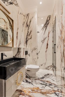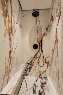 Элитный жилой комплекс клубных особняков из пяти корпусов, с фасадами из натурального камня и большими панорамным окнами