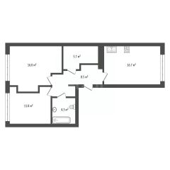 Квартира формата евро-3 две изолированные комнаты, гардеробная (или хозяйственная комната), совмещенный санузел с полноразмерной ванной.