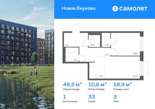 Строим кварталы для жизни с заботой о будущем. Предлагается 1-комнатная квартира комфорт-класса 46,51 кв.м в корпусе 33 на 3 этаже, в ЖК "Новое Внуково"