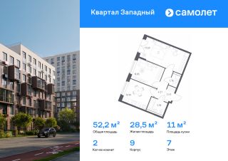 Строим кварталы для жизни с заботой о будущем. Предлагается 2-комнатная квартира комфорт-класса 52,19 кв.м в корпусе 9 на 7 этаже, в ЖК "Квартал Западный"
