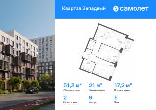 Строим кварталы для жизни с заботой о будущем. Предлагается 2-комнатная квартира комфорт-класса 51,27 кв.м в корпусе 9 на 5 этаже, в ЖК "Квартал Западный"