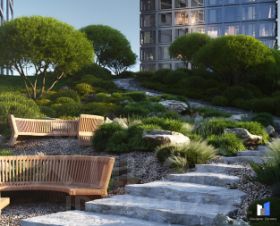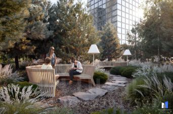 Ландшафтный дизайн включает разнообразие растений и зон для различных активностей: от уединения до спортивных занятий. Первые этажи комплекса предлагают клубную инфраструктуру и зоны ритейла, включая супермаркет и рестораны, что позволяет жителям проводить время с комфортом.