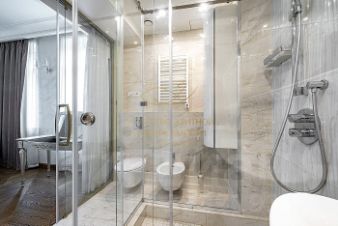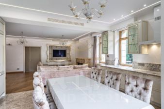Квартира поражает своим дизайнерским ремонтом, выполненным с использованием дорогостоящих премиальных материалов. Итальянская кухня, мебель, созданная по индивидуальному заказу, паркетная доска Coswick, лепнина из гипса каждая деталь подчеркивает высокий статус этой недвижимости.
