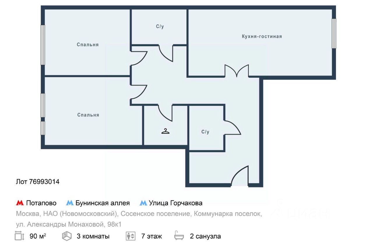 Пешая доступность до двух станций метро: Потапово и Бунинская аллея.