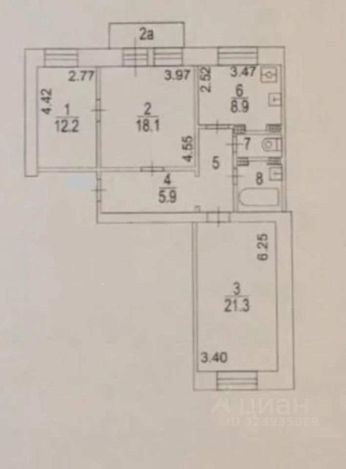 - три комнаты ( 21,3. 18,1. 12,2 )