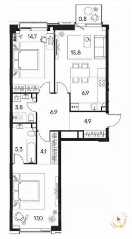 Просторная планировка: Огромная кухня-гостиная, светлая и уютная, с балконом для расслабляющих вечеров.