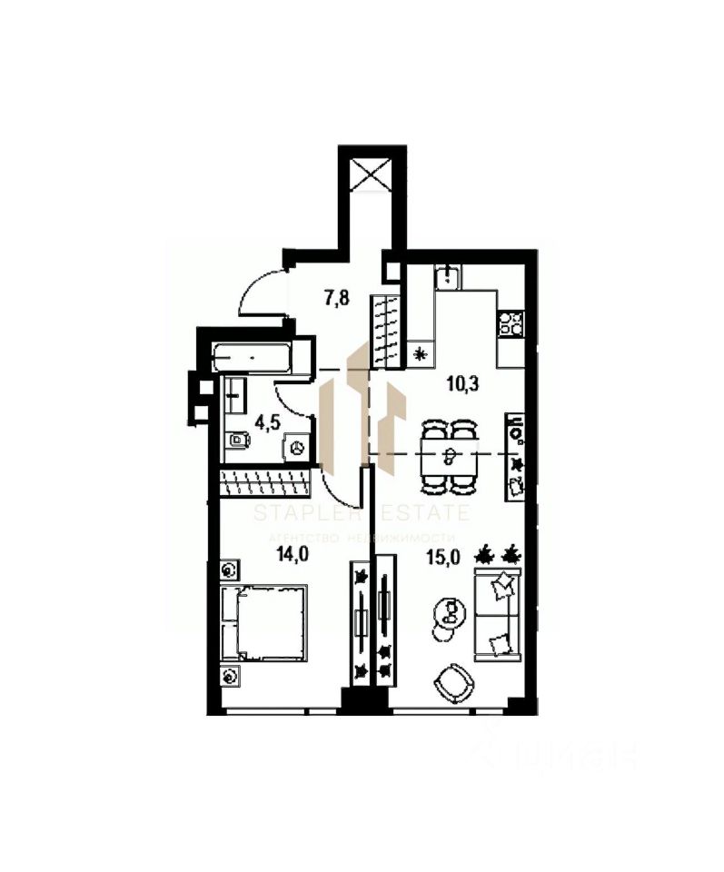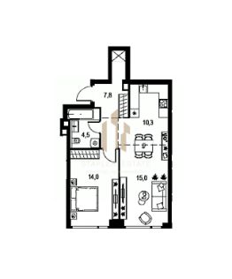 - Планировка предполагает: просторную кухню-гостиную и спальню