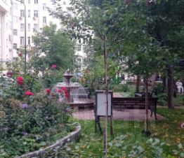Знаменитый "красно-белый" дом в историческом центре на Кутузовском проспекте, шикарный двор в зелени и цветах с действующим фонтаном.