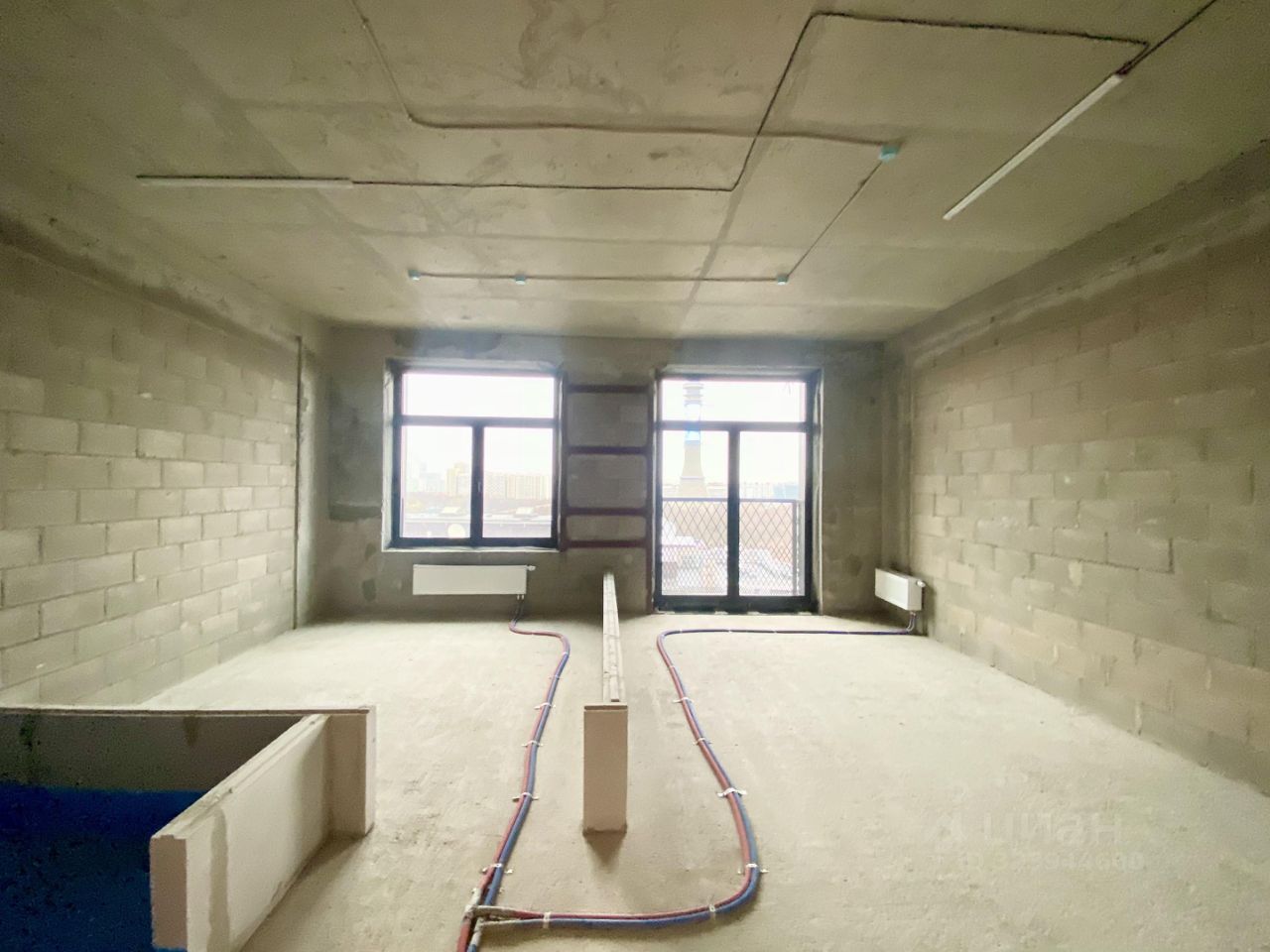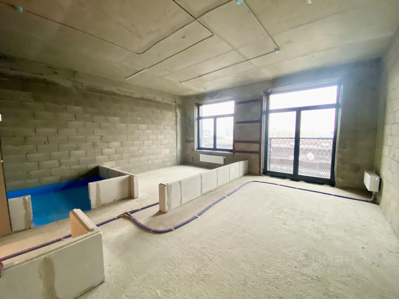 Бетон, предусмотрено место для юольшой ванной.