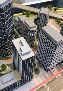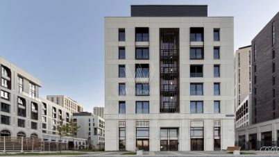 Главное о доме. Shagal — новый квартал на набережной Марка Шагала с длинной линией воды и собственными пешеходными маршрутами у берега. Архитектура складывается в ансамбль башен и камерных урбан-вилл: крупное остекление, светлые фасады, разная этажность и квартальные улицы. Во входных группах — натуральный камень, мягкий свет, стойки ресепшн и зоны для коротких встреч. На стилобате устроили дворы без машин: бульвары, детские и спортивные площадки, тихие лаунж-углы. В составе проекта запланировали школу и несколько детских садов, на первых этажах открываются кафе и повседневные сервисы. Для автомобилей работает многоуровневый паркинг со спуском на лифте к лобби.
