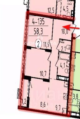 в доме 4 корп.4.1. квартира 4-135, этаж 9, S=58,3 м2.