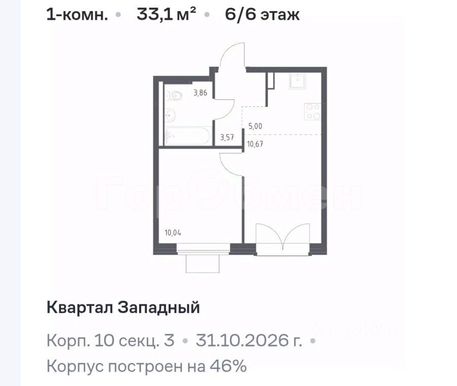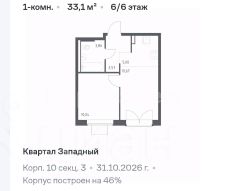 Общая площадь: 33,1 м²