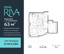 Продаётся Квартира с 2 спальнями квартира на 11 этаже 26-этажного дома (3 корпус).