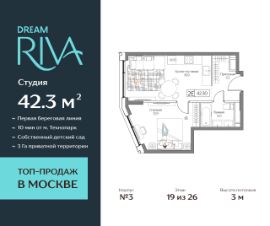 Продаётся Студия на 19 этаже 26-этажного дома (3 корпус).